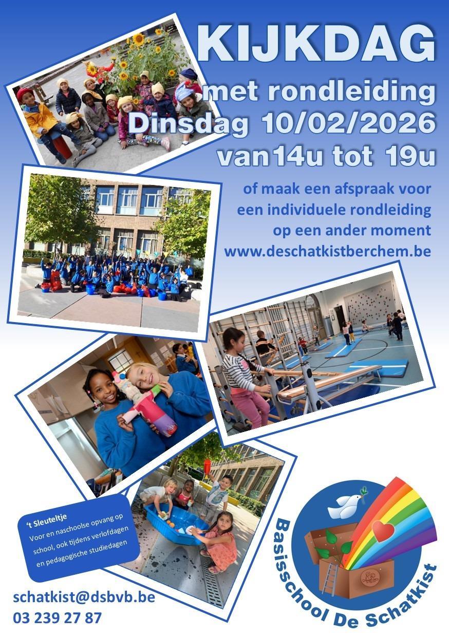 Start je kindje volgend schooljaar in de kleuterschool of in het eerste leerjaar? Kom dan zeker langs op onze kijkdag. We leiden je graag rond op onze school en beantwoorden al je vragen.